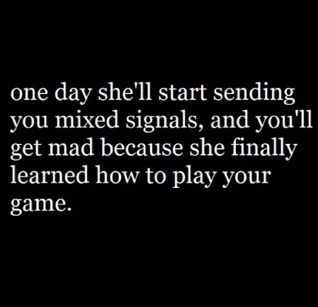 I send these (mixed signals)…a lot. I don’t even know if I’d call them signals, I don’t know how else to describe it. Especially in the last year…as I’m in the FUCK a relationship phase of my life. I’ve been so good for so long. I’ve done the good lil girlfriend, the good lil woman that played house. I’m done with that shit. I didn’t think it would last a year…fact is I don’t see this “phase” leaving anytime soon. I don’t want to worry about anything but myself & my daughter.